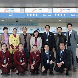 院长助理耿健到国航重庆分公司考察时与实习学生合影