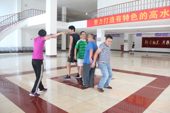 下午,学院对教职工进行了团队素质拓展训练,共有“破冰之旅——串名字”、“齐眉棍”、“心心相印——背夹球接力”、 “踩报纸”四个项目。所有的项目培训完后,曹玉琳老师让每一小组的队员站成一竖排,后面的队员为前面的队员按摩,捏捏肩、捶捶背,然后交换。这一举动让大家笑开了颜,也感受到了前所未有的温馨和温暖。虽然此次培训只有短短的半天时间,但是通过这次训练,各部门员工之间增加了了解,增进了感情,促进了团结协作,为以后高效率的配合工作打下了良好的基础。