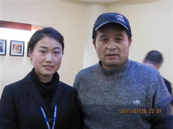 2010届航空服务专业毕业生刘小苹与中央电视台知名主持人毕福剑在宜昌机场合影