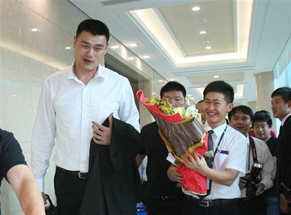 2012届航空服务专业杨国亮(右手捧鲜花者)代表南航重庆分公司迎接篮球明星姚明。现任南航重庆分公司空中乘务(安全员)岗位
