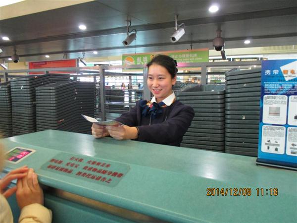 2015届航空服务专业学生杨雅洁在江北机场地服公司值机柜台实习工作照