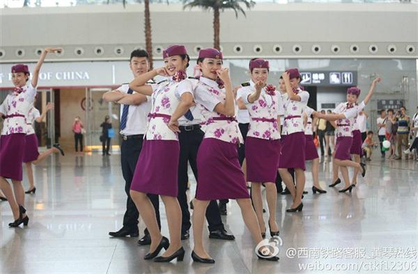 袁湘宜,在成都铁路局动车组乘务员(第一排左1)