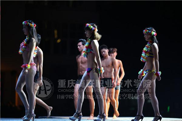 民航运输系的同学们表演的《异域风情》,让大家领略到来自异域的民族服饰、别样风情;民航服务系的同学们表演的《浪漫之夏》比基尼秀更是引爆全场,帅气的小伙儿和漂亮的姑娘,外加动人的比基尼,让晚会气氛达到了高潮。