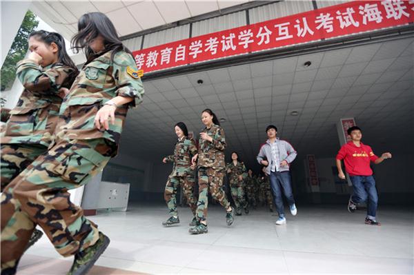 在不到5分钟的时间里,参与演练的1300余名学生在安全人员的组织指挥下用手护住头部弯腰有序地跑出教室,并按照预定的疏散路线,迅速撤离到学院广场。在此期间,不幸受伤的“伤员”也没有被遗忘,在老师和同学们的帮助下撤离到安全区域,并得到了“紧急救治”。