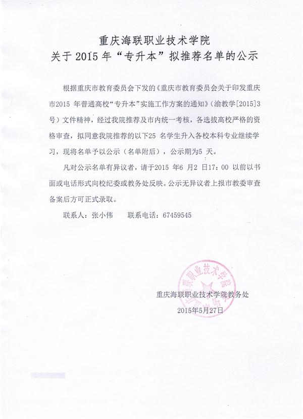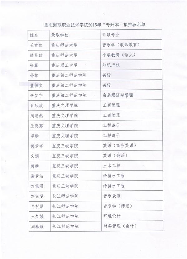 买球官方网站关于2015年“专升本”拟推荐名单的公示