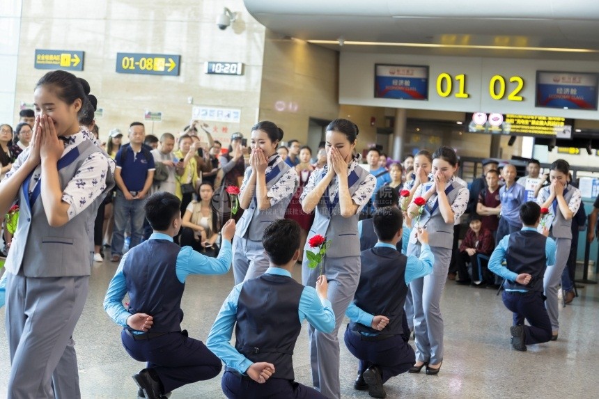 据了解,本次“真情服务、有‘礼’有我”青年节活动由重庆江北国际机场主办,我院和重庆泛美新程航空服务有限公司承办,参与演出的所有人员均是学院航空类专业大一学生。他们从自身所学专业出发,以古今变换的表演形式,结合歌舞、走秀,将航空服务从业人员的“礼”和“情”相结合,充分展现了航空类专业院校在校生的职业技能和精神风貌。