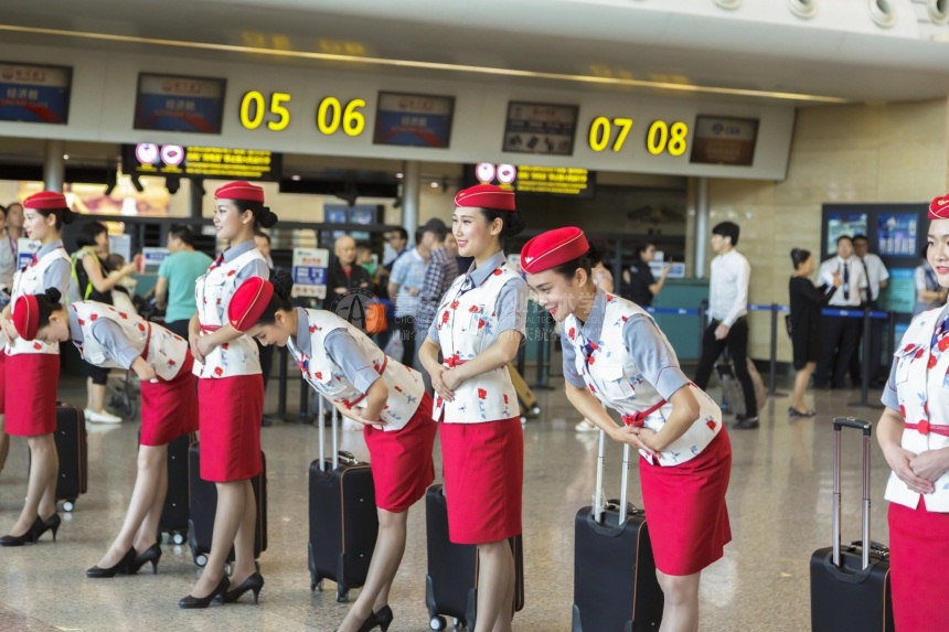 突然,音乐停止,表演者们齐刷刷脱下长袍,露出现代职业装,向旅客们展示青年人对现代礼仪的理解。随后,英俊潇洒的“空少”和身穿江北机场客服部制服的“空姐”现场还向旅客展示了屈膝、拥抱、贴脸、亲手等各国礼仪文化。一段专业的航空礼仪秀画风唯美、颜值爆表,让现场旅客大呼过瘾。最后,在空姐甜美而职业的播报声中,俊男美女们各自拉着行李箱消失在了人群中。