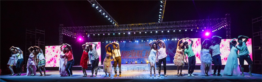 民航服务系的同学们表演的《Summer storm》比基尼秀更是引爆全场,健美帅气的小伙儿和漂亮性感的姑娘,瞬间将晚会气氛推向了高潮。其中一组比基尼秀酷似时尚大秀“维多利亚的秘密”,炫彩靓丽的气球、甜美诱人的翅膀、活泼可爱的台风,再配上同系列服装的古铜色肌肉男伴,俨然一场视觉盛宴。