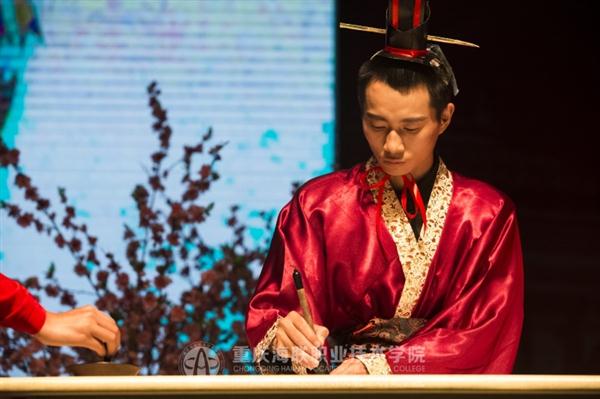 接着,可爱的蓬蓬裙热舞之后,由民航服务系、空中乘务系、民航机务系联袂奉献的古典风节目《舞墨韵》为现场吹去一阵优雅兼具美感的清风。演员们举手投足之间尽是古风古韵,瞬间穿越千年,梦回大汉。