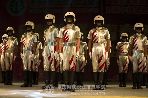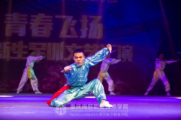作为一所标准化军事化管理的航空类高职院校,武术表演也诚意满满,创意突出。舞台中空中飞人频现,列队表演不输正规军队水准。节目一开始,舞台就笼罩在一片“刀光剑影”中。亮闪闪的大刀和演员们矫健的身姿相映成辉,全场最热血的节目当之无愧。
