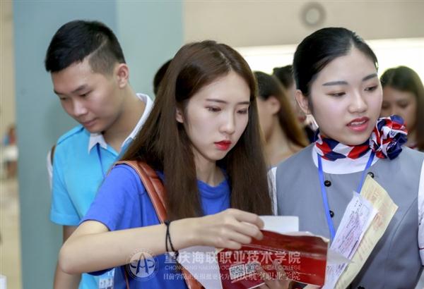 人头攒动的致和楼大厅里,空中乘务系的报到队伍格外引人注目,现场同学“标配”清一色的大长腿、高颜值十分吸睛。现场汇集了来自内蒙古、海南、贵州等十余个省份的新生,值得一提的是,半数以上的新生均是自己独自前来报到,并无父母陪同,较往年许多家庭动辄“全员上阵”相比,今年的“小鲜肉、小仙女”们更为独立,在工作人员的指引下,顺利完成整个报到流程。
