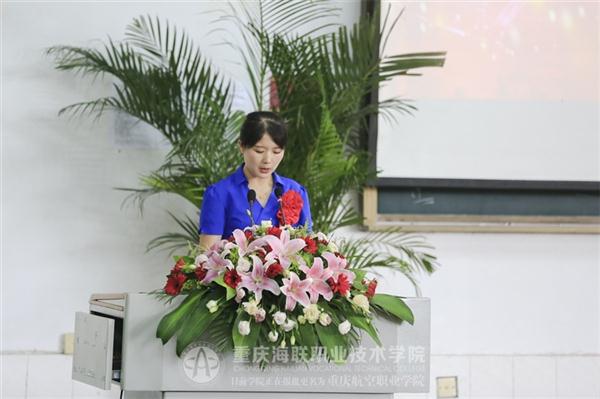 随后,空中乘务系的唐雨乔同学上台发言。她代表全体同学向所有辛勤耕耘的老师们致以节日的祝福和诚挚的谢意。“虽是一柄红烛,却心系学子之心”,回忆里,都是老师们辛勤工作、关爱学生的幕幕动人画面;展未来,更表达出学生们把对老师的深深感激和敬意化为前进道路上的动力。海联,一直就是呵护每一个梦想的地方。