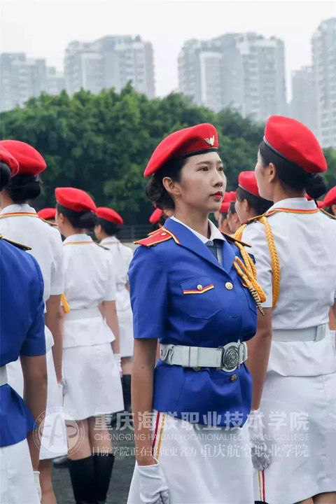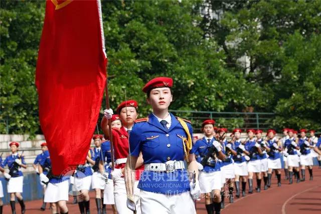 仪仗队共128人组成,平均身高1.68m以上的她们,手扛十来斤的仿真钢枪,身着红白蓝三色制服,清新亮眼,展现海联女生的精气神的最强战队!