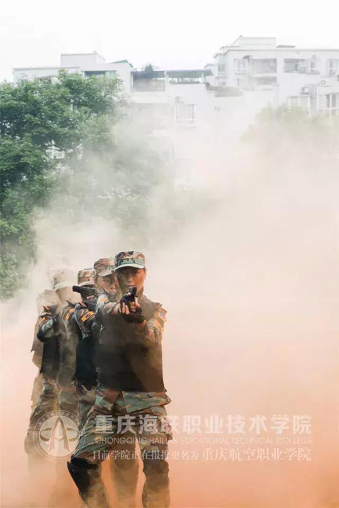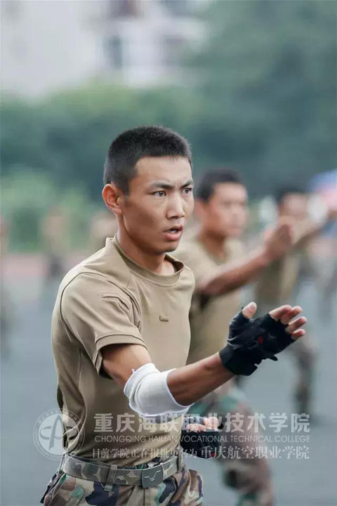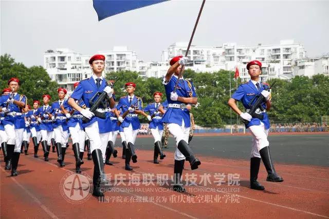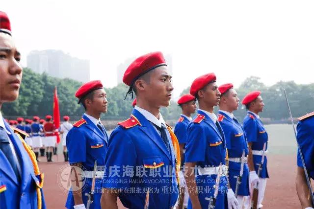 中职部方队、空乘系方队、运输系方队、机务系方队、市场系方队依次向我们走来,为了这一天,烈日、暴雨都不曾让他们退缩,海联迷彩王牌军,就在他们的肩上。