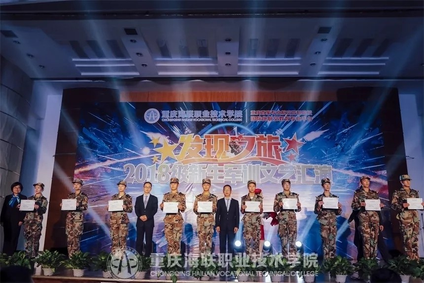 在汇演现场,学院还表彰了本届新生军训先进个人及集体。新生代表为2018年军训优秀实习教官代表颁奖,学院领导为2018年军训成绩标兵集体颁奖,各系部行管主任为2018级军训个人标兵颁奖。