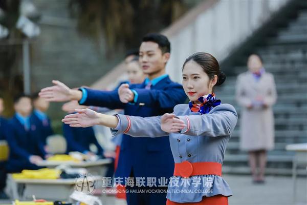 本次教学成果展演,检验了同学们一年里的学习成果,空中乘务系的同学们用良好的精神面貌,严谨规范的动作展现海联空乘人的风采。