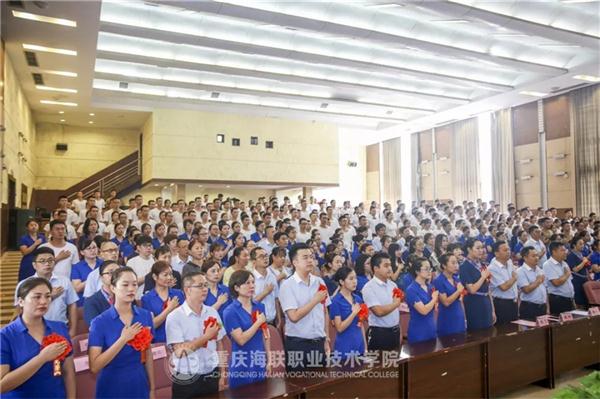 大会在庄严的国歌声中拉开序幕。随后,全体教师们行扶胸礼,庄严宣誓:“我将始终铭记,