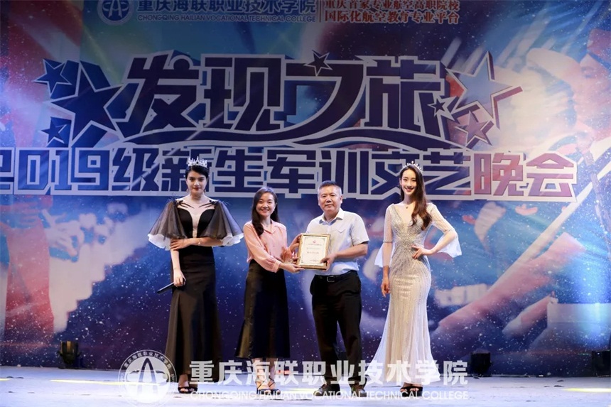 晚会现场,世界旅游小姐大赛重庆赛区组委会副主席朱超群女士为学院授牌。世界旅游小姐大赛重庆赛区组委会执行副主席邓智先生为优秀指导教师颁发了聘书。
