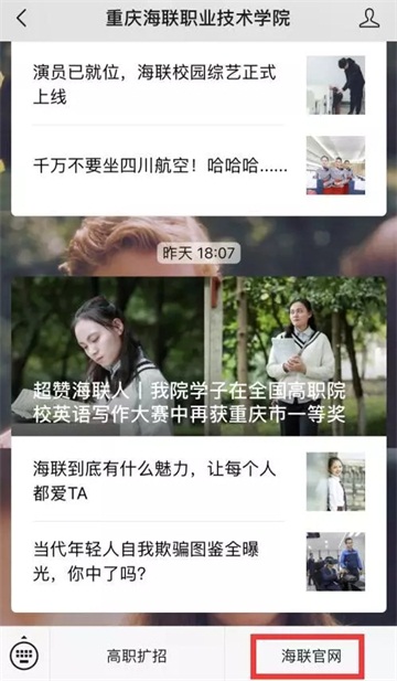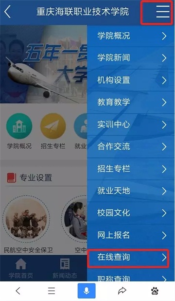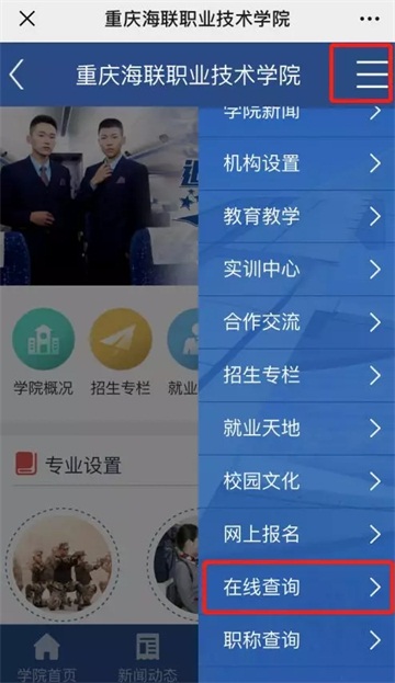 (二)点击“海联官网”--“在线查询”