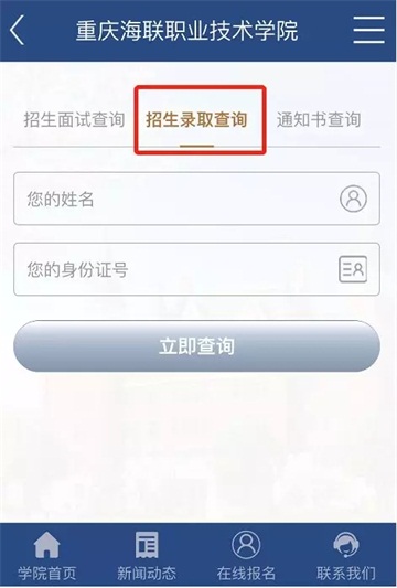 我院针对退役军人、下岗失业人员、农民工、新型职业农民和在职人员等群体开展的高职第三批扩招录取结果已出炉,考生可凭身份证号和姓名进行查询,查询方式如下:
