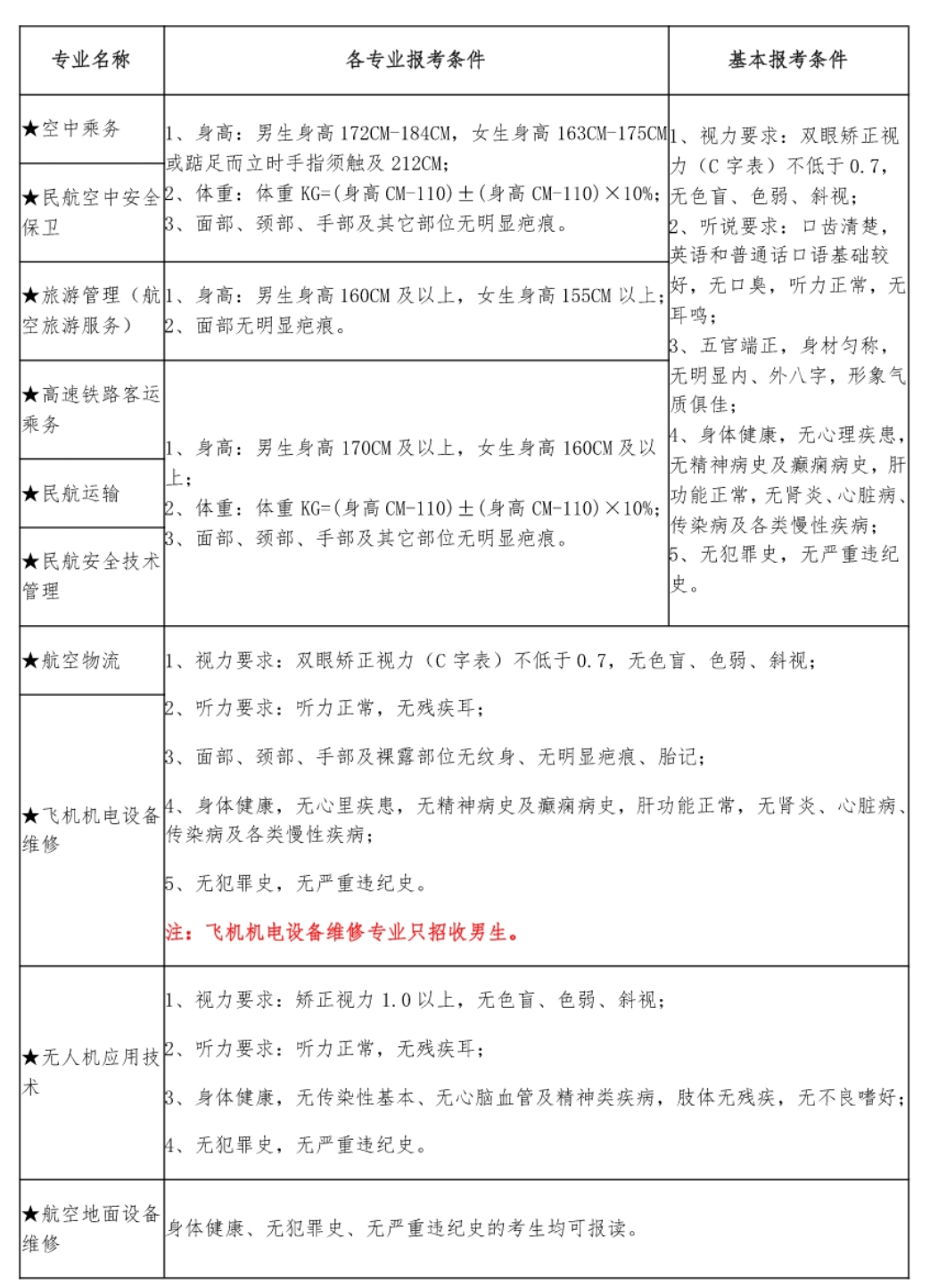 3.录取体检标准:买球官网按教育部、卫生部和中国残疾人联合会制定的《普通高等学院招生体检工作指导意见》执行。为进一步促进学生就业,建议报考航空类专业的考生,参照行业用工标准衡量自身视力、身高、形象等身体条件要求后谨慎报考。