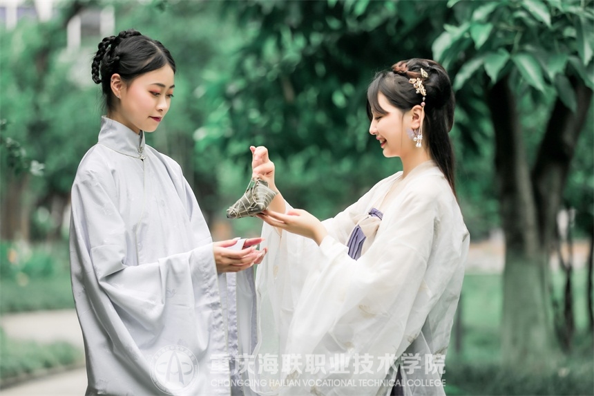 “哇,她们太美了,好像‘仙女’一样!”“这是在拍古装剧吗?”端午节前夕,四名海联姑娘款款身着汉服漫步校园,生动演绎端午传统习俗。
