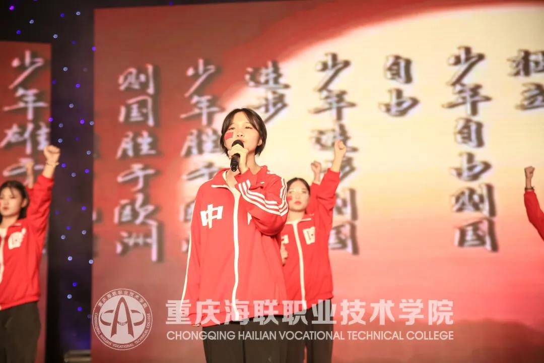在一片掌声中,五专分院学子着装整齐、神采奕奕地登上了舞台。铿锵有力的声音,慷慨激昂的朗诵:少年强则国强,少年独立则国独立。尽显海联学子迎难而上,不畏艰难的精神。
