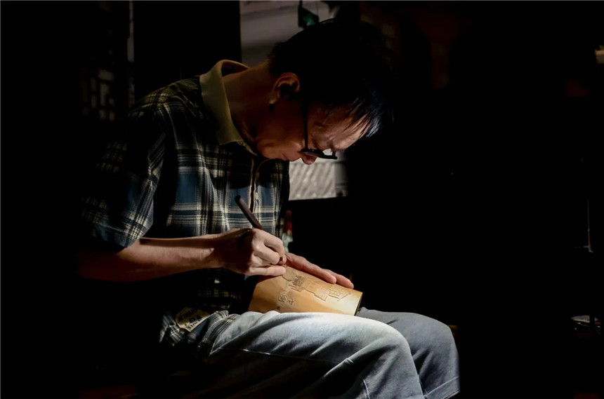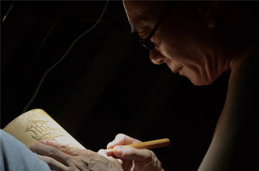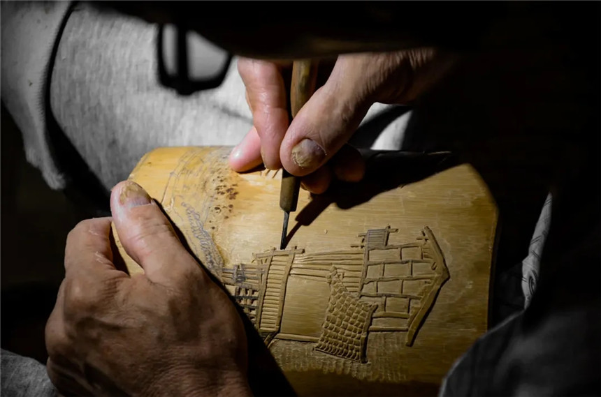 组照《匠人》展现了非遗传承人胡泽宇老师在夜色中制作竹雕作品。从小喜欢雕刻的廖思雨不仅希望用镜头记录下自己对艺术的喜爱,更是想借此机会让更多的人看到匠人的精神和创作过程。