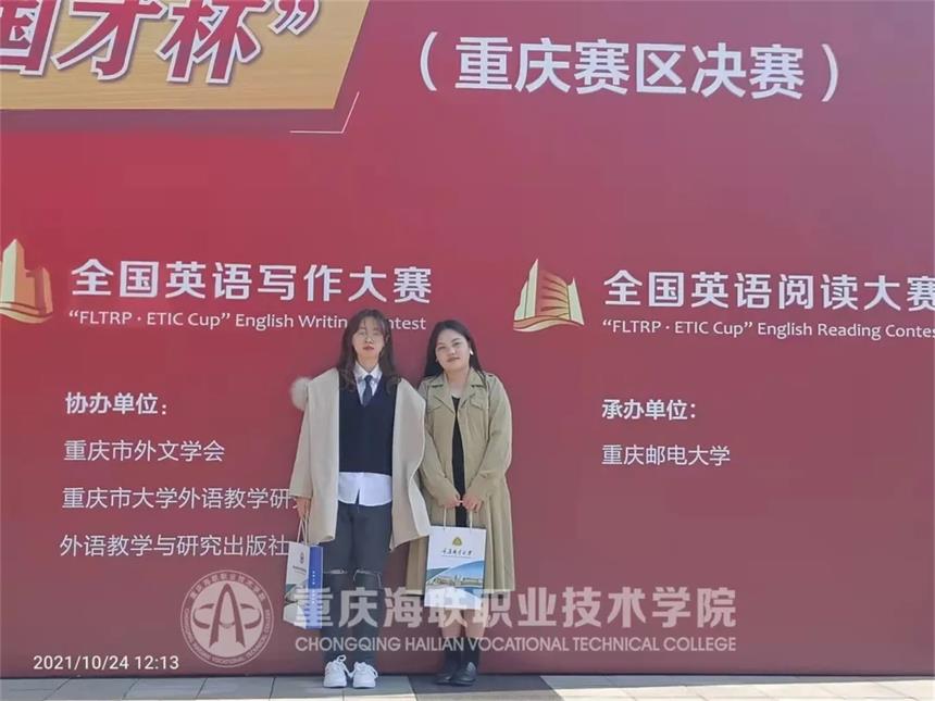 10月24日,由重庆市教育委员会主办的2021“外研社·国才杯”全国英语演讲、写作、阅读大赛重庆赛区决赛圆满落幕。经过激烈的角逐,来自我院2020级民航运输系的秦浩铭、徐乙萍同学分别荣获英语写作比赛二等奖和三等奖。