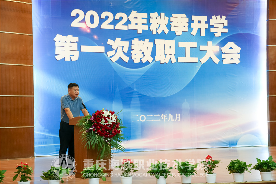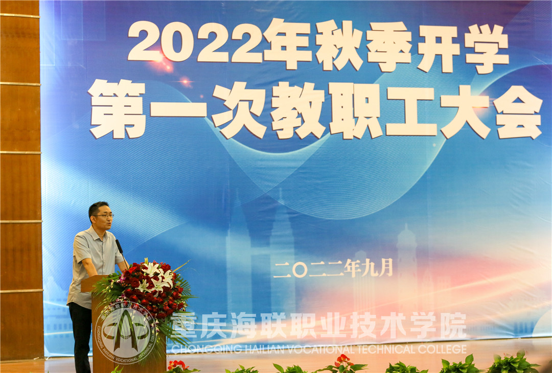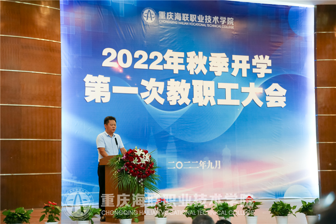 新起点绘就新篇章,开新局展现新风貌。9月20日下午,买球官网召开2022年秋季学期第一次教职工大会。重庆市政协科教卫体委员会副主任、重庆新元投资有限公司董事长、昭信教育研究院执行院长、校理事长吴睫、西南政法大学国有资产管理处副处长张超、学校全体党政领导、昭信教育科技集团相关领导出席大会,全体教职工参加大会。政府督导专员、党委书记郭增琦主持大会。