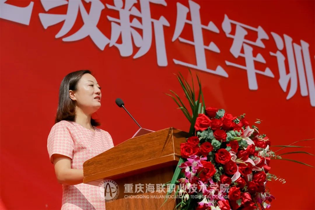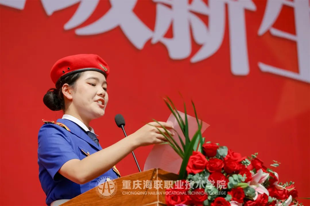 来自2022级空中乘务学院的李孟佳同学和2022级公共事务学院的滕静怡同学作为新生代表发言。她们表达了自己在军训中的改变和收获,向全体带领训练的教官们表示感谢,并寄语同学们作为海联人要有面向世界和未来的胸怀,以及乘风破浪、砥砺前行的决心,书写最美的青春华章。
