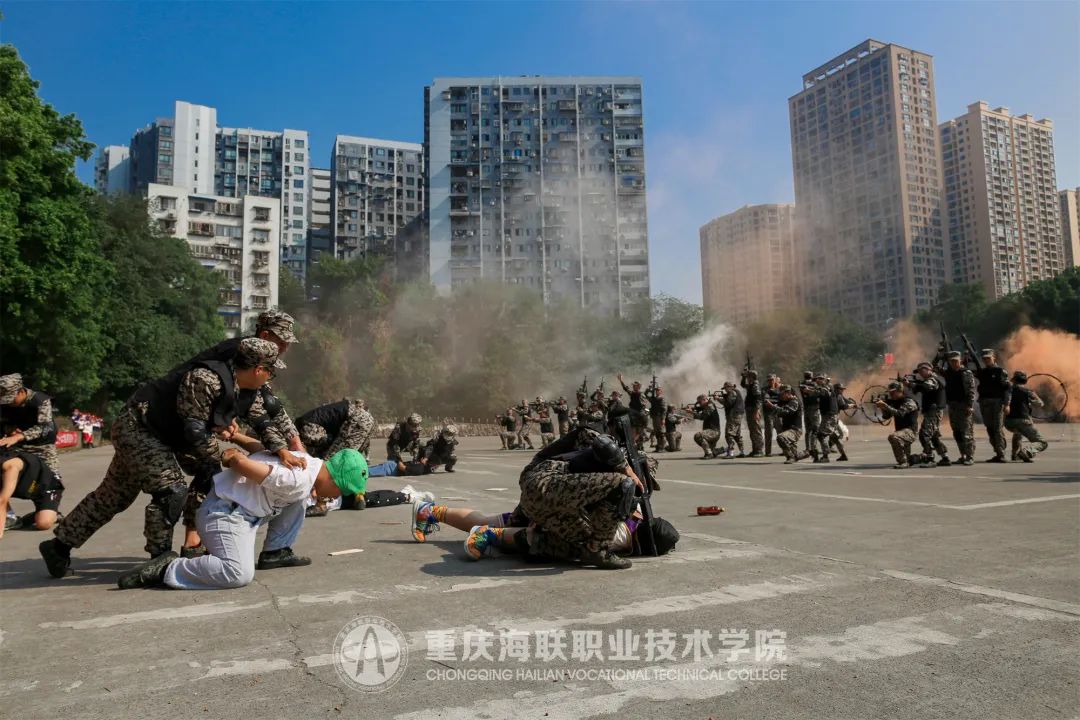 硝烟弥漫中,突然响起一阵猛烈的枪声与嘶吼,几名“匪徒”随即被制服在地......这不是在拍摄大片,这是买球官方网站2022级新生军训成果展示暨开学典礼的现场。
