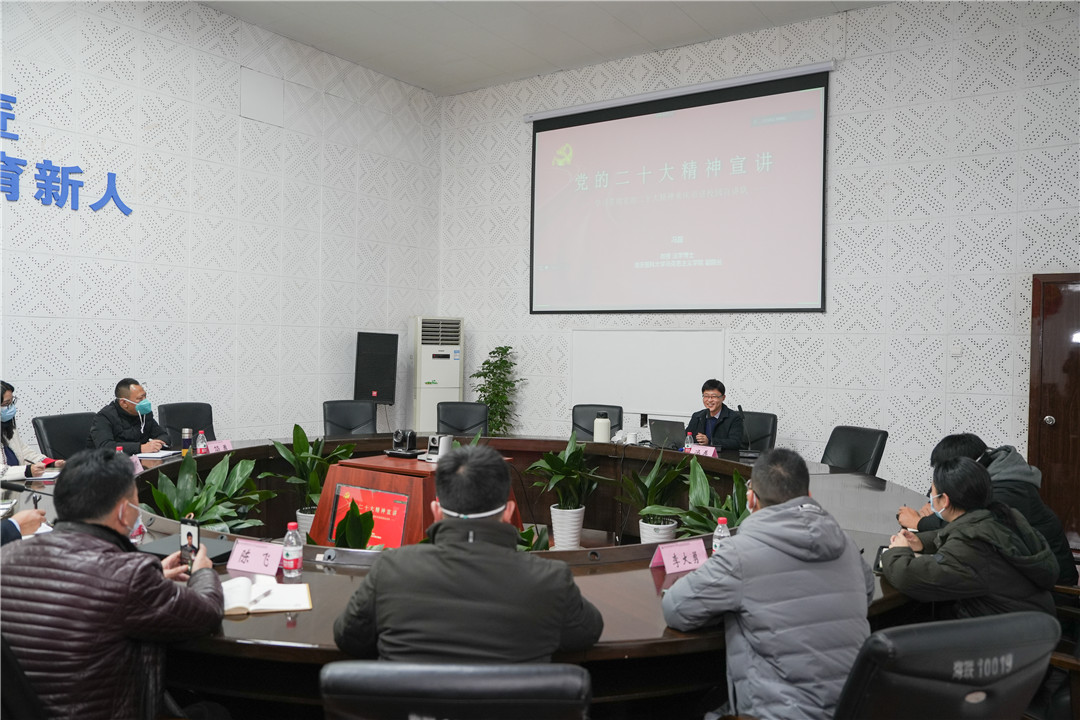 为深入学习贯彻党的二十大精神,根据市委统一安排,12月14日下午,学校在一会议室举行学习贯彻党的二十大精神宣讲报告会。重庆市“进校园”宣讲队队员,重庆医科大学马克思主义学院副院长冯磊教授作宣讲报告。宣讲报告会采取线上线下相结合的方式进行,全体校领导、全体党员师生及入党积极分子代表参加学习。