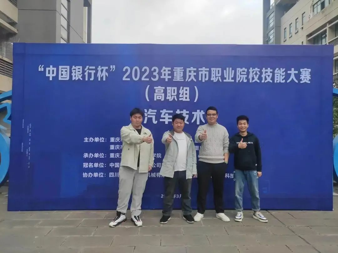 3月22—24日,由重庆市教委、市经信委、市财政局、市人社局主办的“中国银行杯”2023年重庆市职业院校技能大赛(高职组)“汽车技术”项目比赛在重庆工业职业技术学院举行。来自全市26所高职院校的52支队伍同台竞技,智能车辆工程学院教师袁江、袁大春指导的2020级汽车检测与维修技术专业学生向伟、2021级航空地面设备维修专业学生蹇文锌分别荣获二等奖和三等奖。