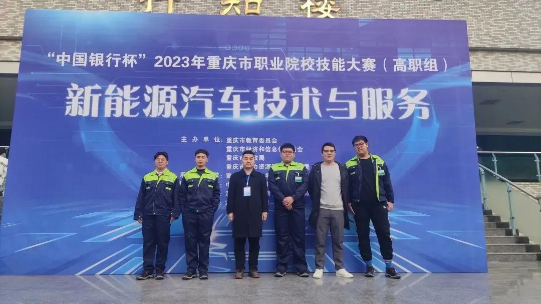 3月29—31日,“中国银行杯”2023年重庆市职业院校技能大赛(高职组)“新能源汽车技术与服务”项目比赛在重庆工商职业学院举行。来自全市高职院校的38支队伍同台竞技,智能车辆工程学院吉方松、袁江、李大勇等老师指导的2020级汽车检测与维修技术专业学生龙江荣、2021级新能源汽车技术专业学生向杨鸿、2022级新能源汽车技术专业学生韩明焱、2022级智能网联汽车技术专业学生杨可晟代表学校参赛,荣获二等奖一项。