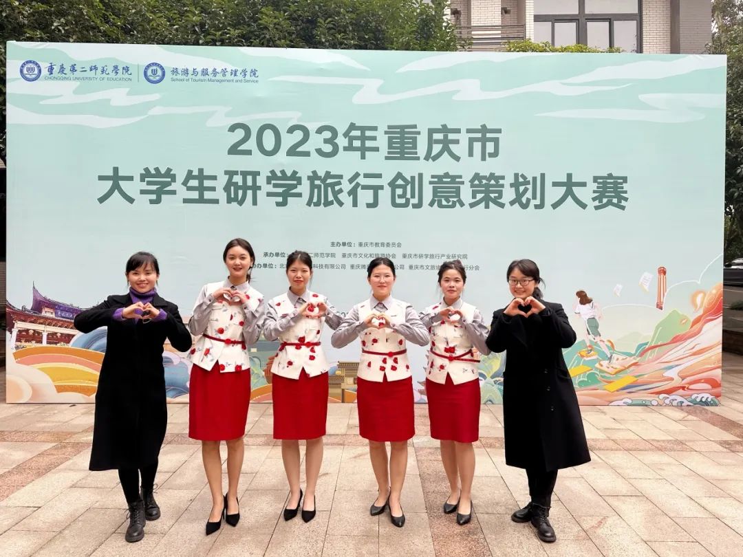 近日,由重庆市教育委员会主办的2023年重庆市大学生研学旅行创意策划大赛落下帷幕。买球官网携程文旅产业学院2022级学生石佳玲、吴婕、白坪、郭帅玲和指导老师徐涛、董颜宏组成的“恐龙抗‘浪’”队,以作品《文物里的重庆》从58支(高职组)参赛队伍中脱颖而出,荣获线路策划组一等奖。徐涛、董颜宏荣获“优秀指导教师奖”。