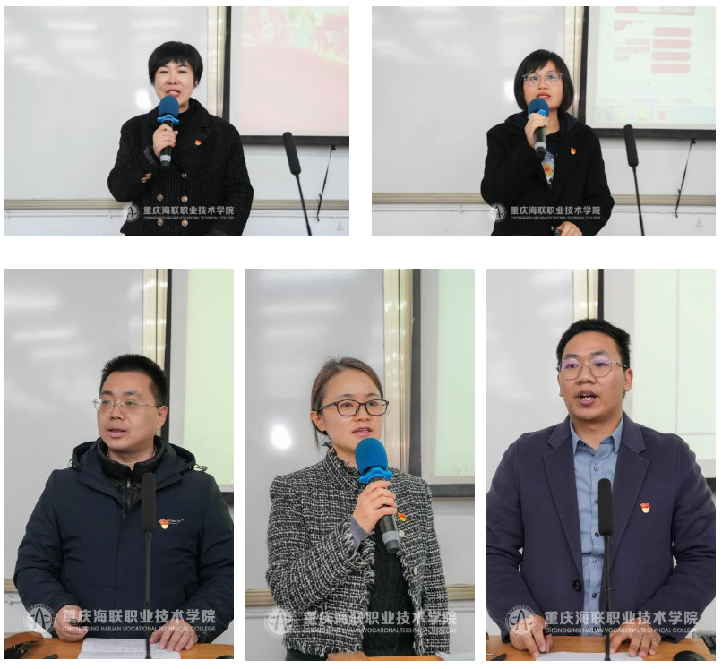 张鹏、李大勇、蹇亚娜、牛金鑫、赵丽红五位党支部书记分别以“建设实干型党支部,赋能学生成长成才”“弘扬红岩精神,探索构建‘1246’工作体系,凝心铸魂 ,聚力推进学院高质量发展”“高校思政工作之大思政课建设”“多措并举,扎实做好基层党建工作”“培育创建重庆市样板党支部”为主题,结合自身工作经历,分享了党建工作中的思考和经验。