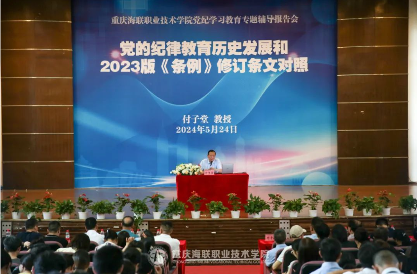 为深入学习贯彻习近平总书记关于党纪学习教育的重要讲话和重要指示批示精神,以及中央及市委关于党纪学习教育相关工作精神,推动全校党纪学习教育走深走实,5月24日,学校邀请第十四届全国人大代表、重庆市人大常务委员会委员、市人大法制委主任委员付子堂教授到校作党纪学习教育专题辅导报告。报告会现场座无虚席,全体校领导、全体党员、师生代表聆听了一场受益匪浅的党课。