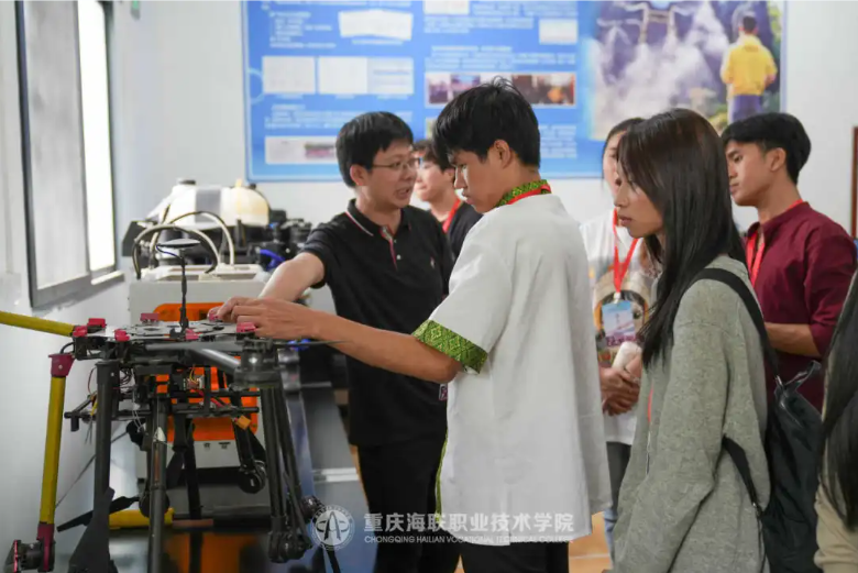 下午,泰国学子走进买球官网特色课堂,在无人机实训中心体验创新教学,他们通过听取授课老师讲解无人机的飞行原理、构造以及无人机控制程序的操作方式,亲自体验操作无人机飞行,让自身的动手能力与科学素养在实践中得到了提升。