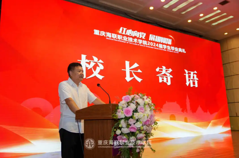 学校校长温良作毕业典礼致辞。他向2024届全体毕业学生表示热烈的祝贺和诚挚的祝福,并赠以“五力并举”勉励毕业生们:一是要保持学习力,二是要培养创造力,三是要提高执行力,四是要拥有审美力,五是要健全自治力。他希望同学们在这个承前启后、继往开来的新时代,在这个蓄势待发、扬帆起航的新起点,为国家富强、民族复兴、人民幸福贡献自己的智慧和力量。
