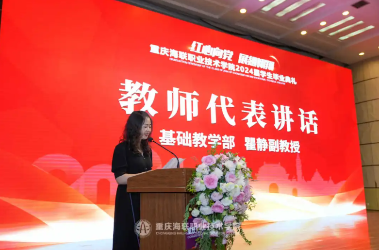 教师代表瞿静老师在发言中代表代表全体教师向毕业生们致以衷心的祝贺和美好的祝福,她希望同学们能成为内心强大的“精神强者”、德行兼备的“时代强者”、建功立业的“行业巨匠”,脚踏实地,不忘初心地一直往前走。
