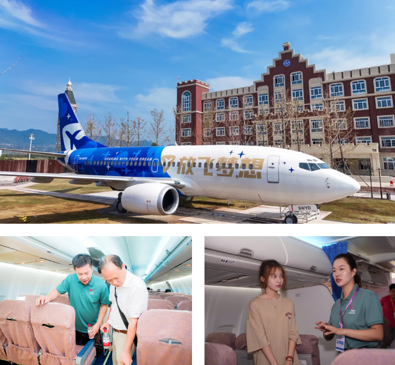 不少学生家长慕名而来,满怀好奇地参观摆放在学校广场中央的“大飞机”。学校领导和老师详细地向学生家长们介绍了学校的教学设施和实训条件,让家长们对孩子的学习环境和未来发展方向有了更深入的了解。