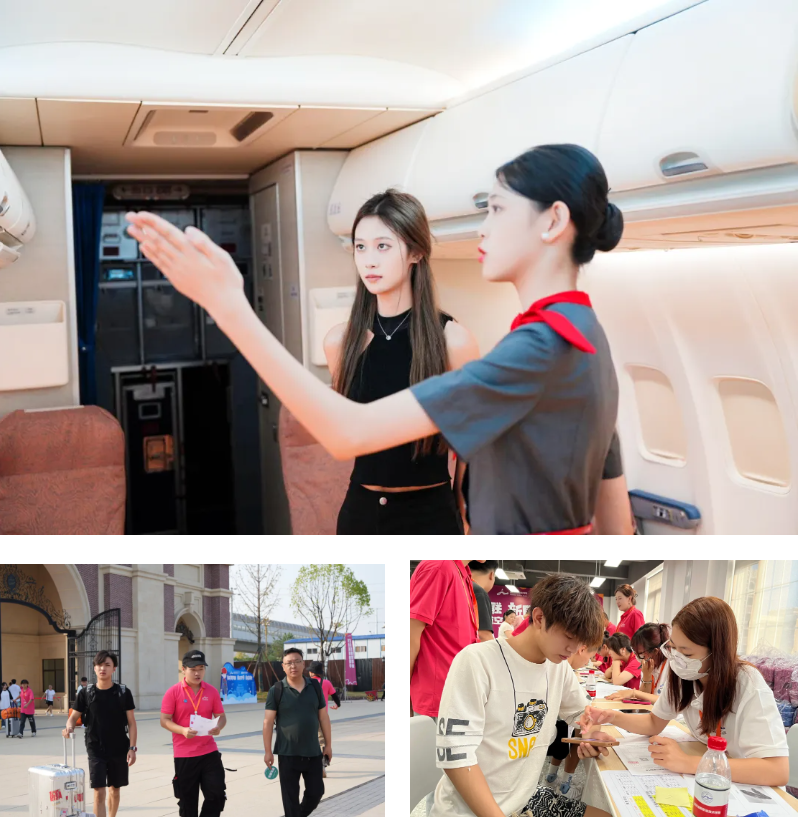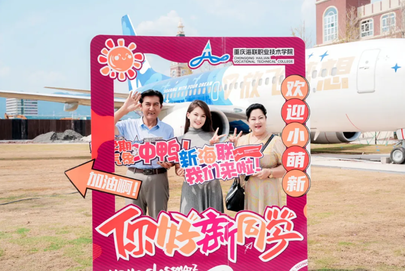 在学校大门口、T1教学楼、专属定制波音737-700客机、凌云钟楼前,新生们积极参加“探索校园——打卡活动”,在“地标”点定格下与海联的第一个美好瞬间。