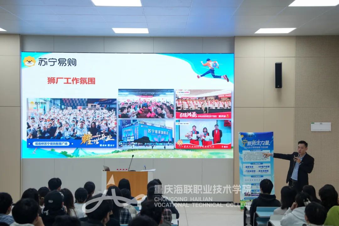 为促进毕业生高质量充分就业,为学生求职和用人单位招聘搭建平台,促进学生与企业之间的双向选择,10月11日,重庆苏宁易购销售有限公司、天港酒店集团管理有限公司受邀到学校开展企业宣讲招聘会。