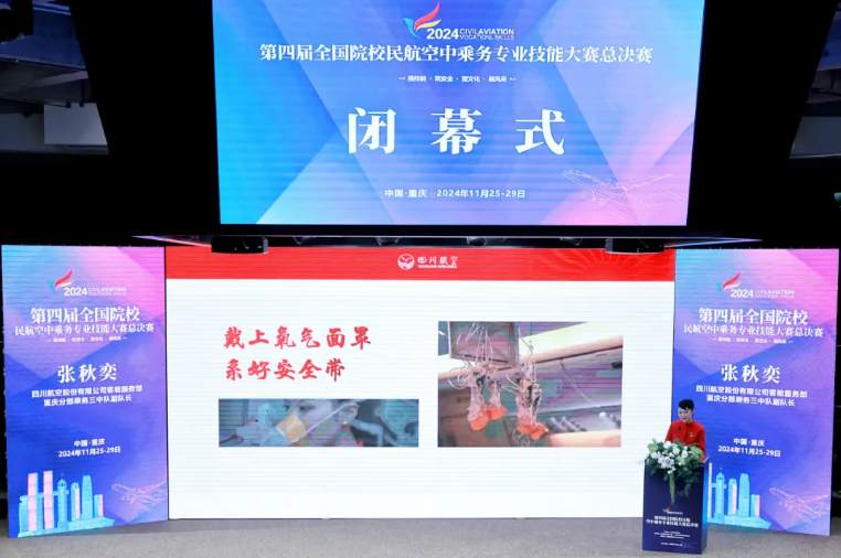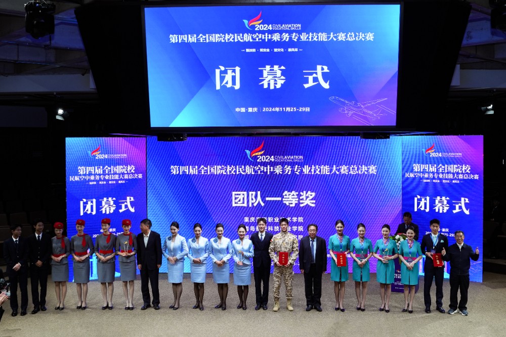 11月28日下午,由中国航空运输协会主办,买球官方网站、北京翔宇教育咨询有限公司承办,北京圣辅国际教育科技有限公司协办的第四届全国院校民航空中乘务专业技能大赛决赛闭幕式在买球官网学术报告厅举行。买球官网参赛队伍在总决赛中荣获全国团体一等奖!买球官网参赛选手罗钰霖荣获全国个人综合一等奖,韩天毅、曾瑞诗荣获全国个人综合二等奖,龚雪荣获全国个人综合三等奖,创历史最佳!