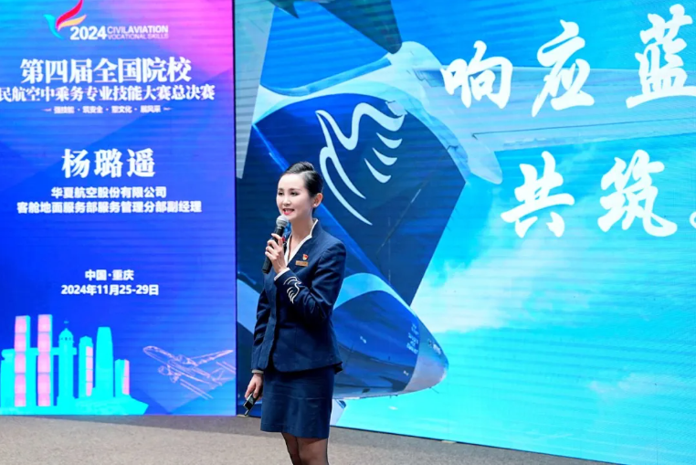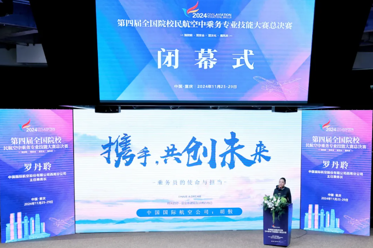大赛裁判长、中国国际航空公司客舱部原总经理、中国航协客舱乘务委员会副主任黄宗瑛表示,技能大赛对于深化教育教学改革、推进产教融合和提高人才培养具有重要意义。大赛不仅展现了参赛队伍的职业素养、技能与团队协作能力,还反映了中国民航专业人才培养的成果。赛事规则对标中国民航局最新标准,创新考核模式。大赛不仅是一次技能检阅,也是人才展示与选拔的重要平台,鼓励参赛者将经验转化为职业生涯动力,期待未来继续举办第五届大赛。