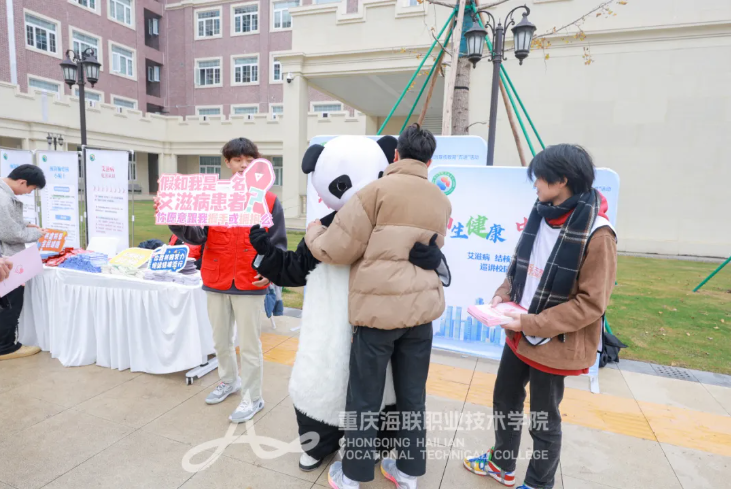 现场设置了模拟艾滋病患者的角色扮演环节,通过“假如我是一名艾滋病患者,你愿意跟我握手或拥抱吗?”的互动,让学生亲身体验与艾滋病患者的接触,消除恐惧和歧视,传递关爱与支持,并发放艾滋病防治宣传册、安全套等宣传资料和用品,鼓励学生关注自身健康,采取有效预防措施。