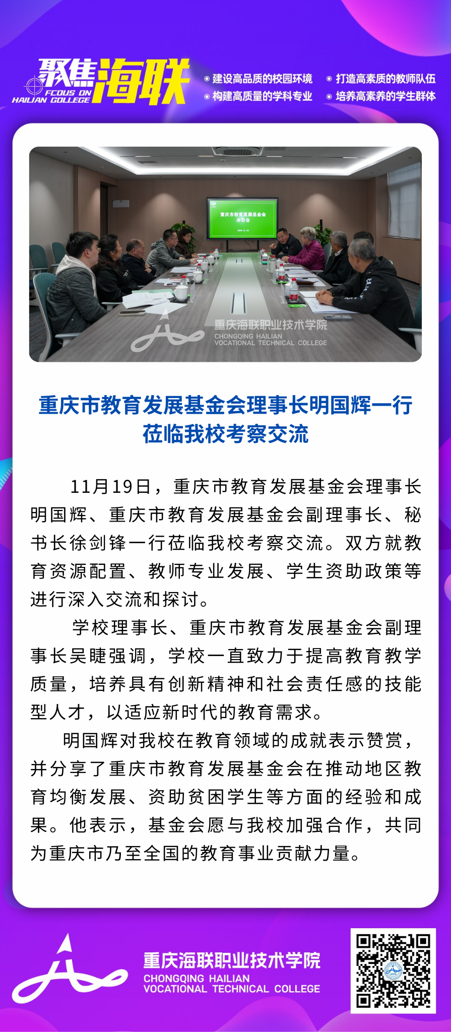重庆市教育发展基金会理事长明国辉一行莅临买球官网考察交流