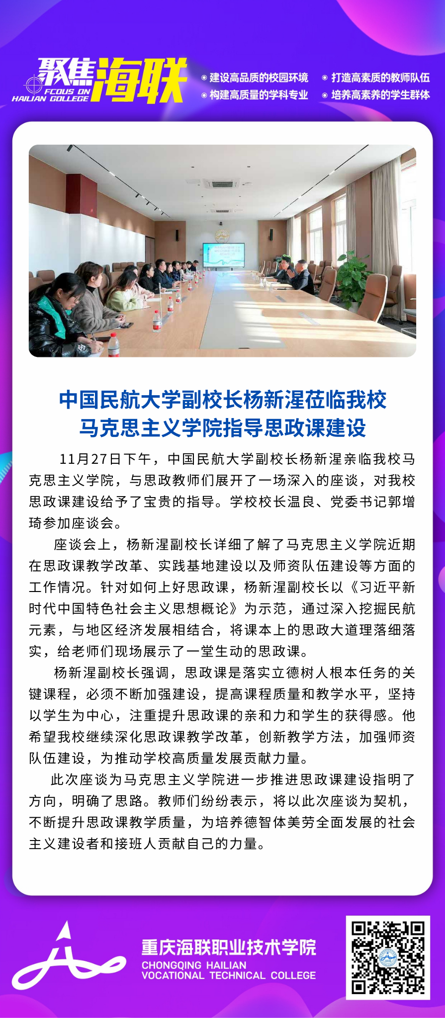 中国民航大学副校长杨新湦莅临买球官网马克思主义学院指导思政课建设