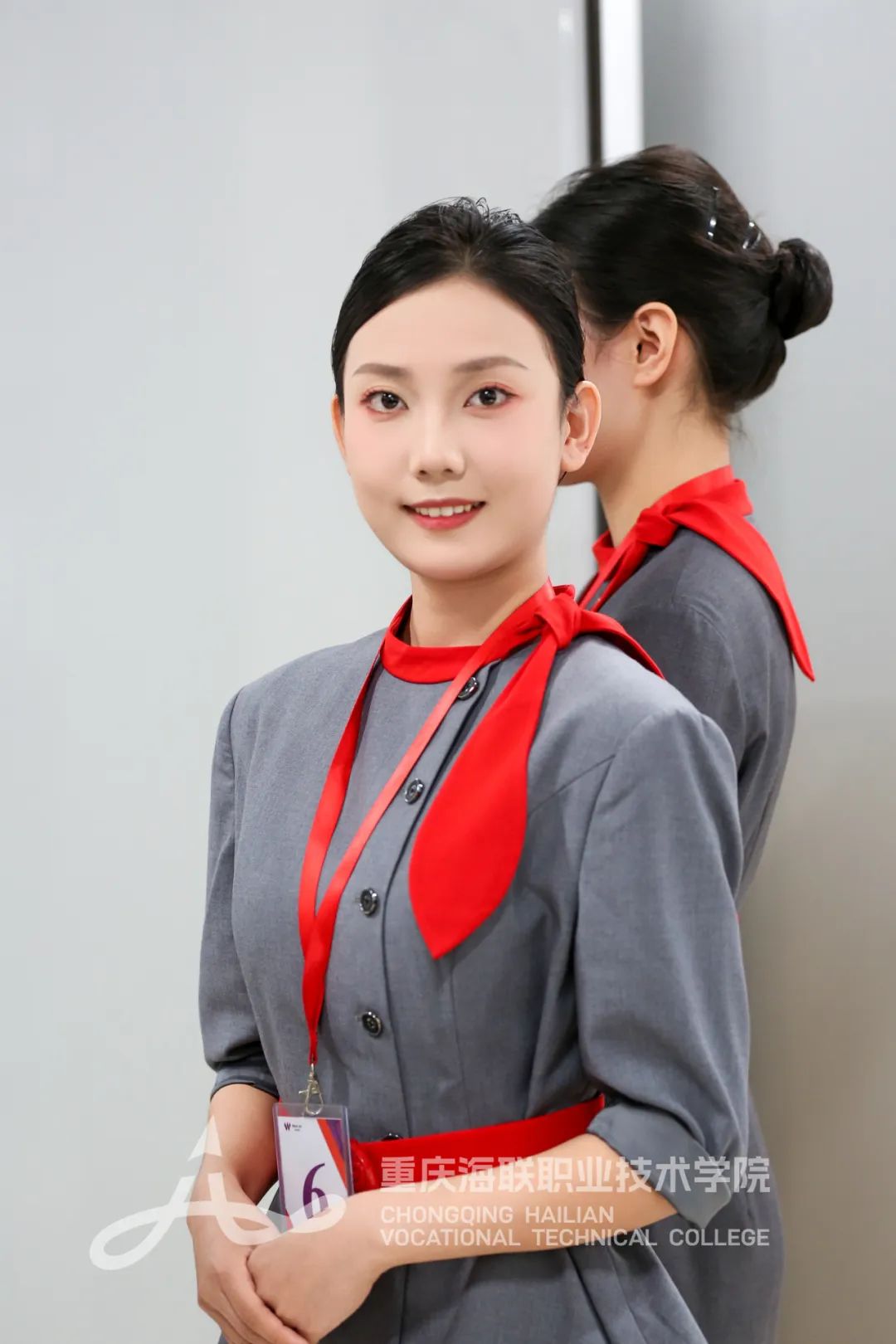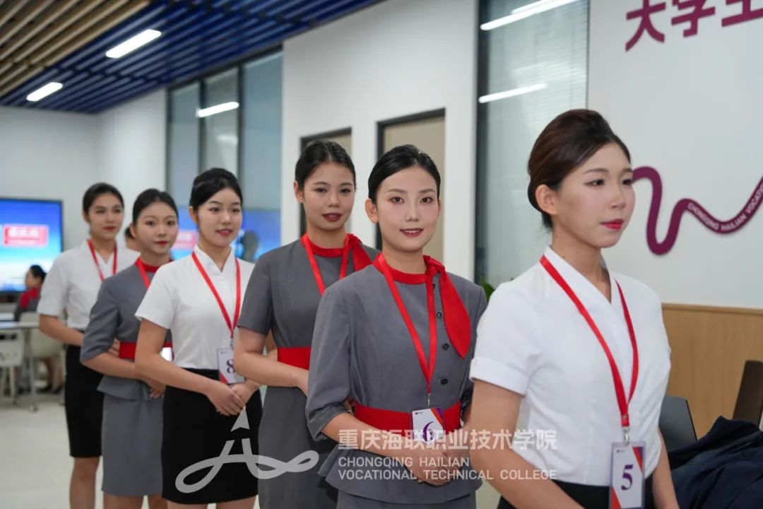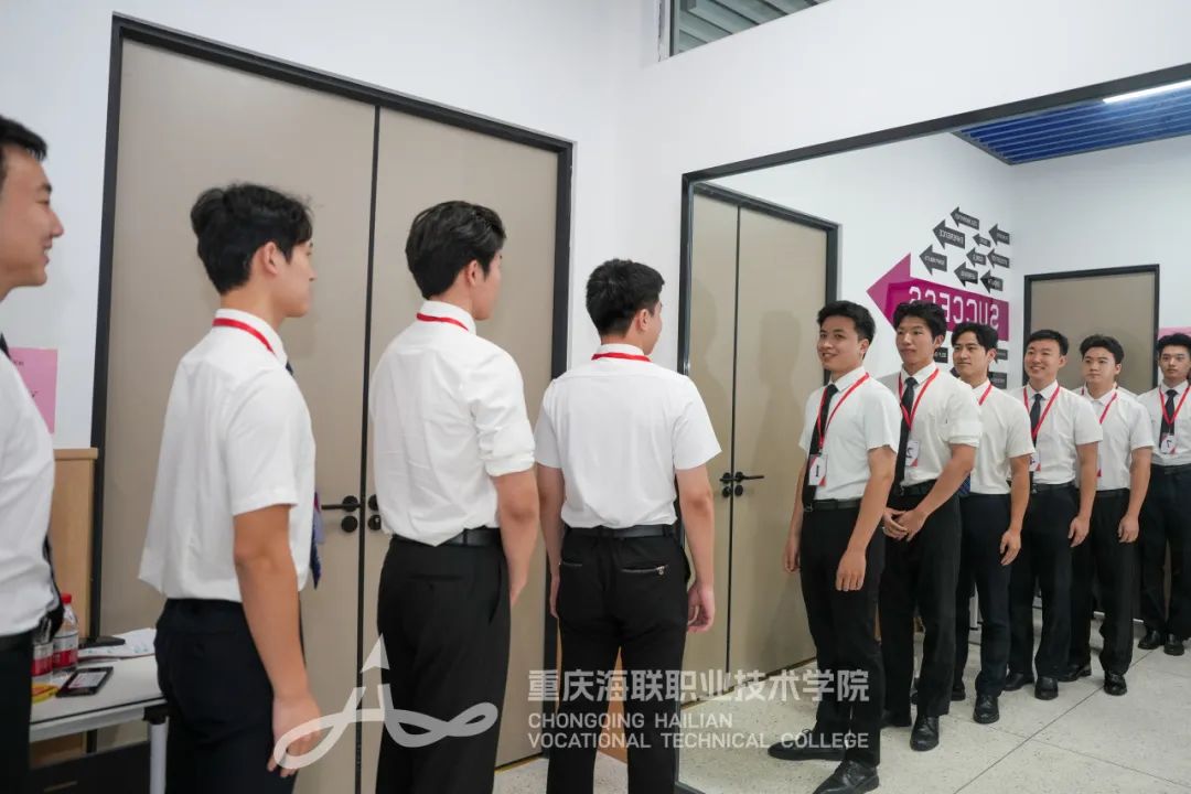 海联学子得体的职业仪态、满溢自信的眼神、展现亲和力的微笑,无一不显露着对万尺蓝天的执着。